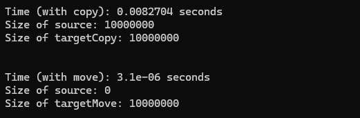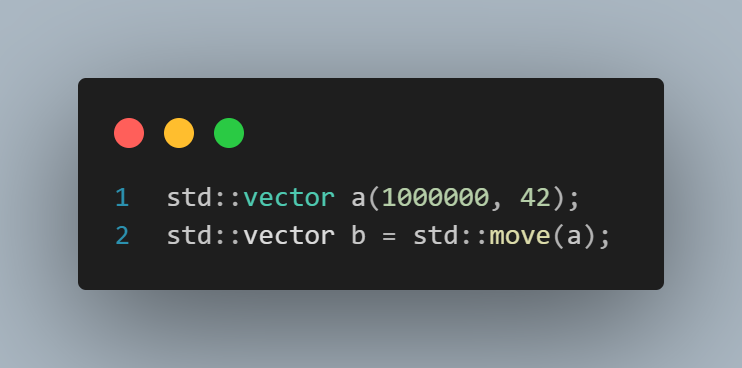 Here, b “steals” the memory buffer from a. After the move, a becomes empty but remains valid. No expensive copy takes place.